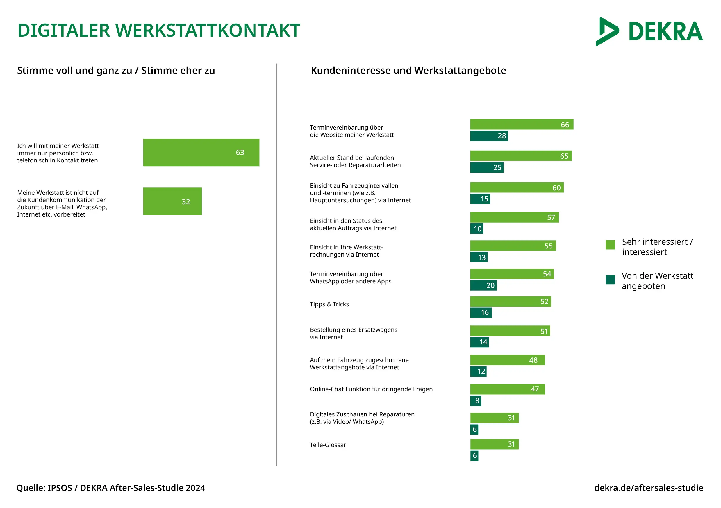 Die Umfrage zur Digitalisierung im After Sales Bereich, die Ipsos zum vierten Mal im Auftrag von DEKRA durchgeführt hat, bietet den Kfz-Werkstätten zahlreiche Hilfestellungen insbesondere zum Themenkomplex der analogen und digitalen Kundenansprache.