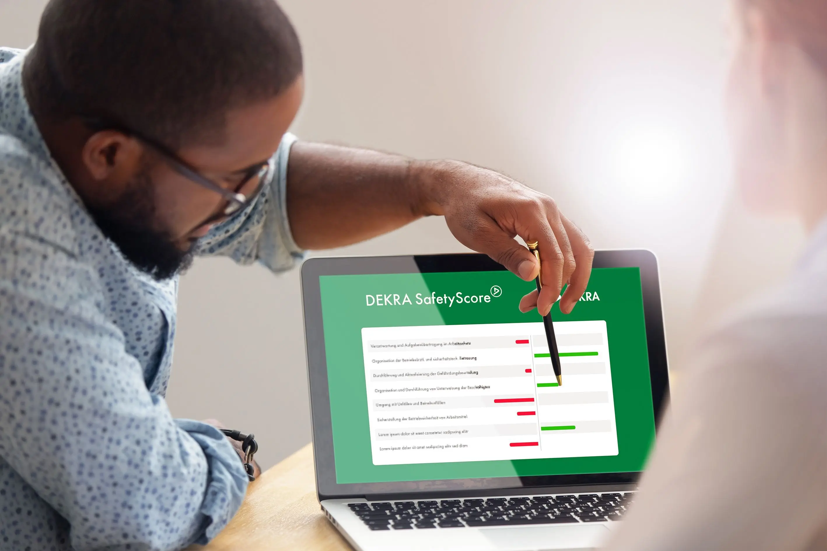 Bewährt haben sich regelmäßige Sicherheitsbegehungen und fest installierte Sicherheitsroutinen, die von den Vorgesetzen aktiv begleitet werden. Hilfreich sind digitale Tools wie DEKRA Safety Web oder DEKRA Safety Score, die den verantwortlichen Arbeitgeber und die Beschäftigten Auskunft zum Status des Arbeits- und Gesundheitsschutzes geben, bei Unterweisungen und Trainings unterstützen und alle Maßnahmen dokumentieren.